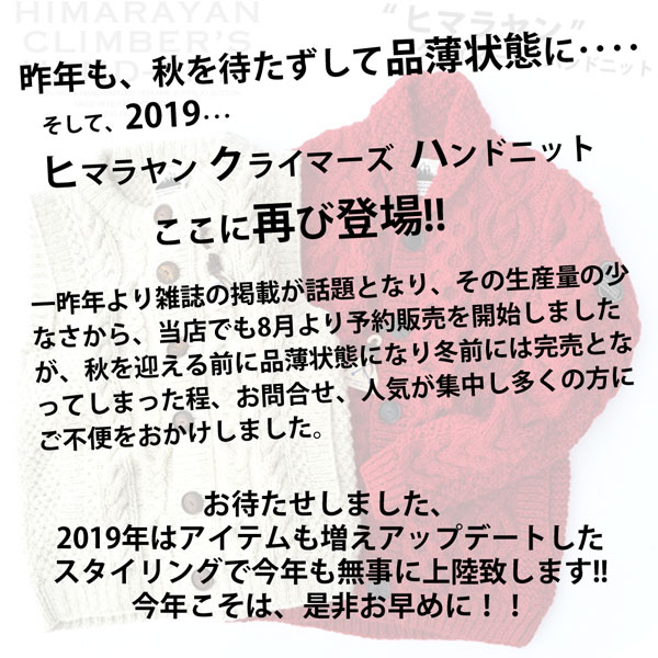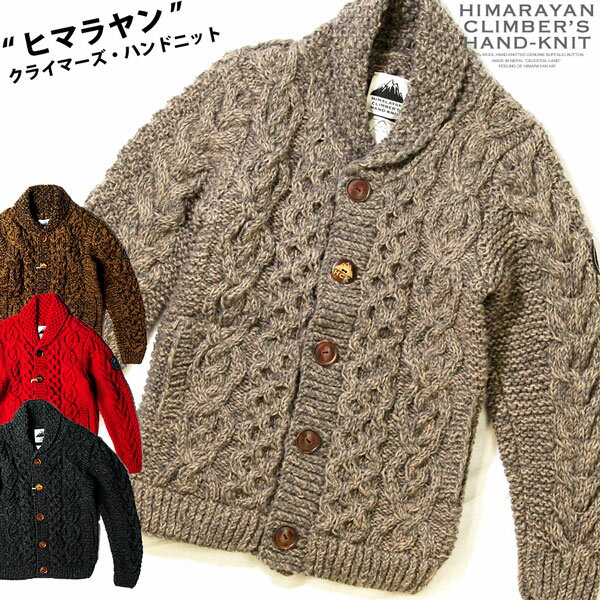 ヒマラヤン クライマーズ ハンドニット 2019(HIMALAYAN CLIMBER'S HAND KNIT/カウチンニット/メンズ) ショール カラー カーディガン 手編み ウール 前開き ベージュ レッド ブラウン ブラック 杢「生成り/赤/茶/黒」「 M-LL 」秋冬 新作【HCK-19F1】